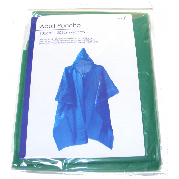 Adult Plastic Poncho with Hood - Choice of 4 Colours